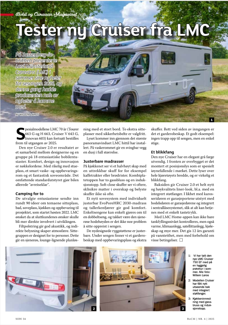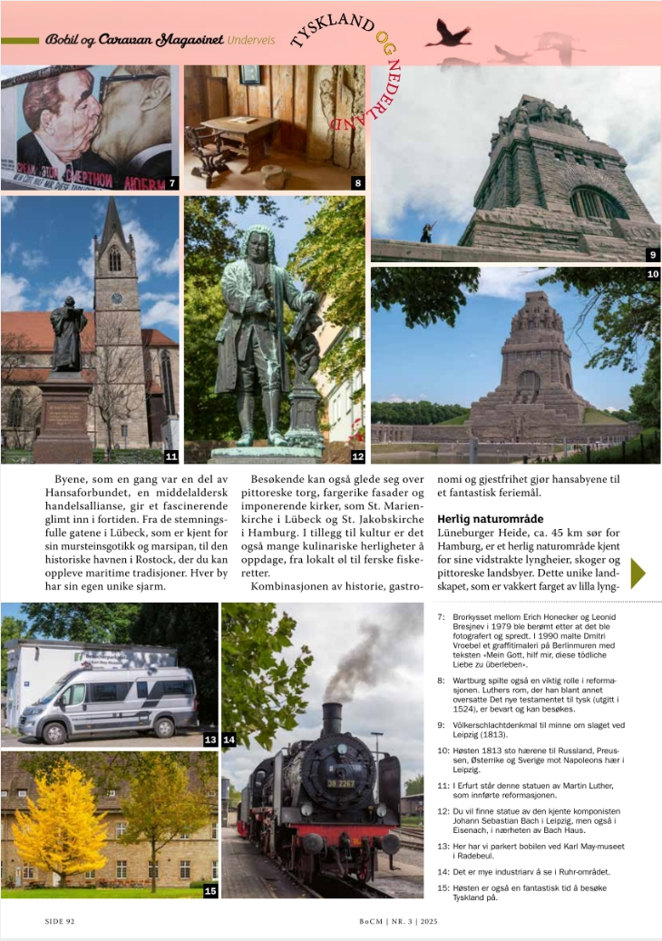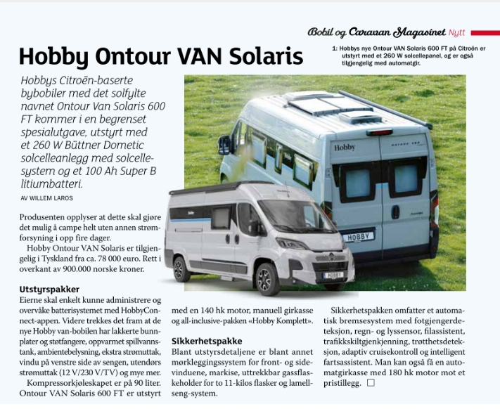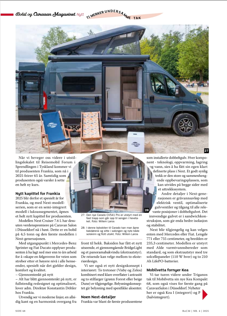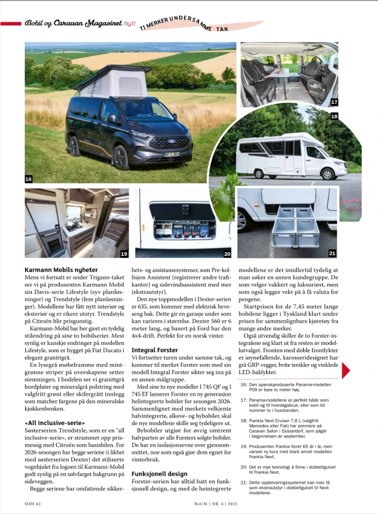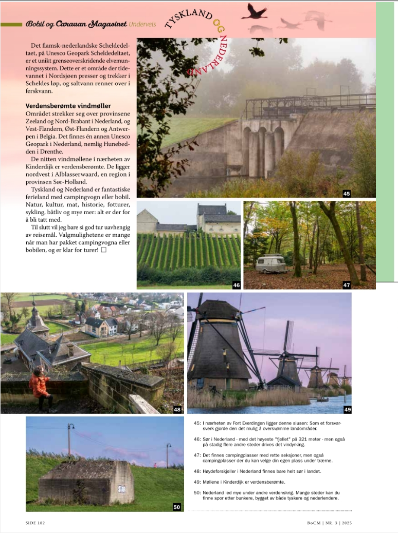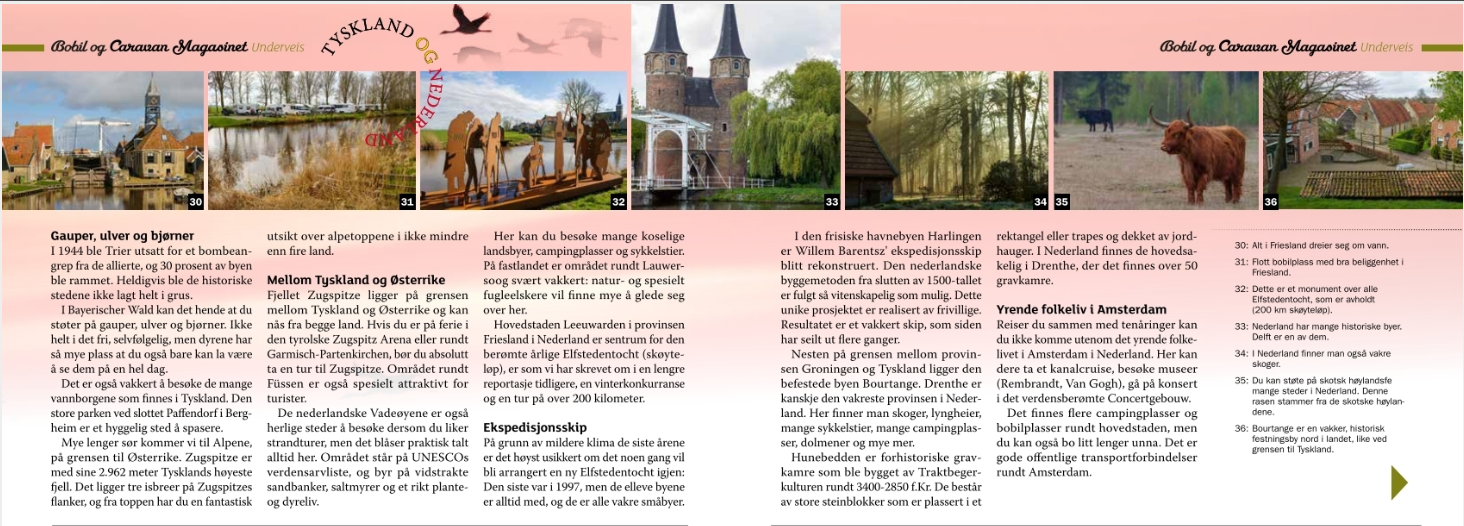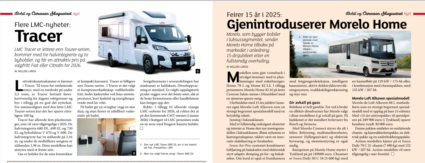 Tegen de zomer 2025 publiceerde het Noorse Bobil og Caravan Magasinet een groot verhaal van mij met tal van vakantiebestemmingen. In het septembernummer publiceerde het tijdschrift veel campernieuws van mijn hand.