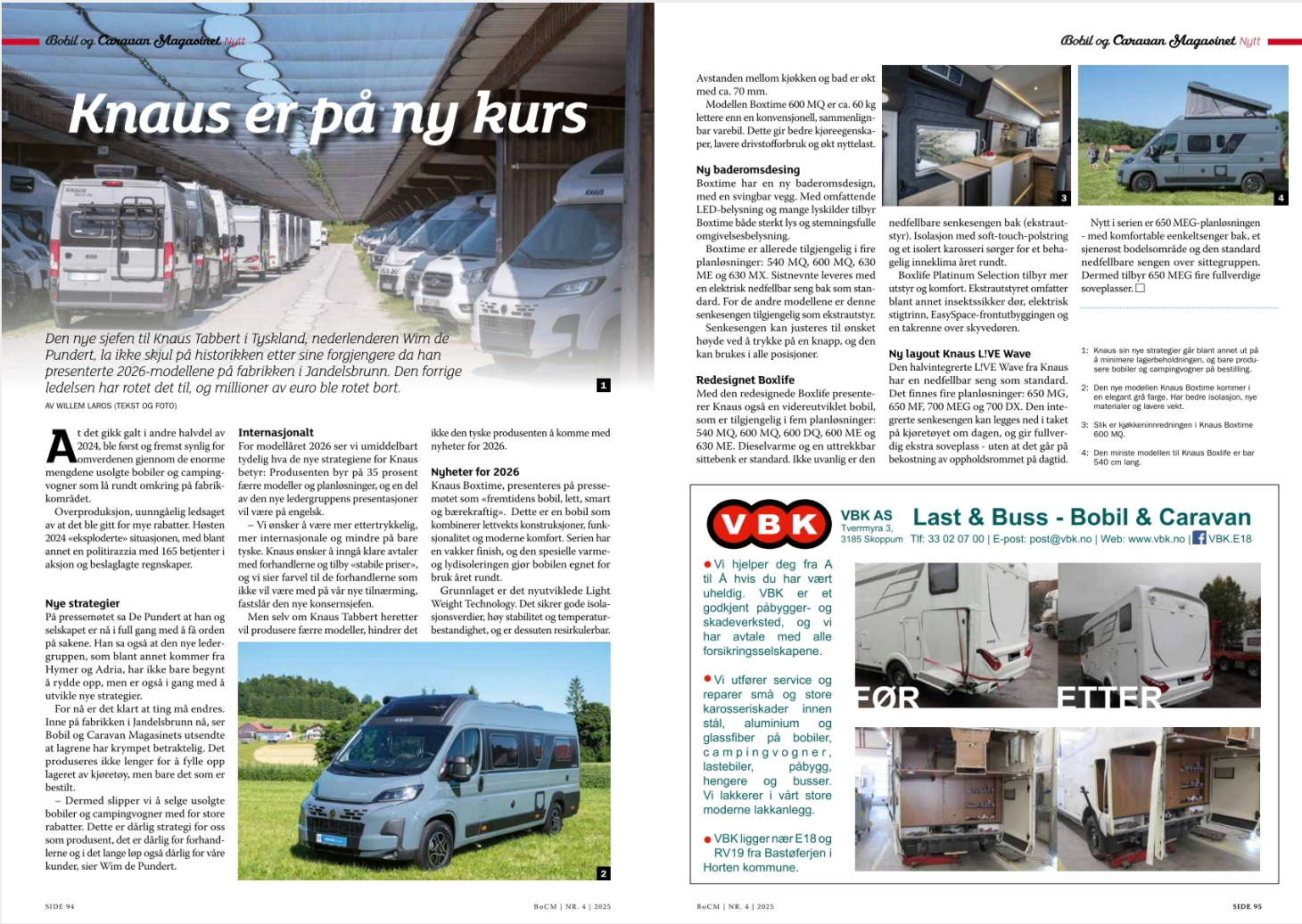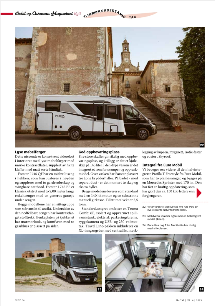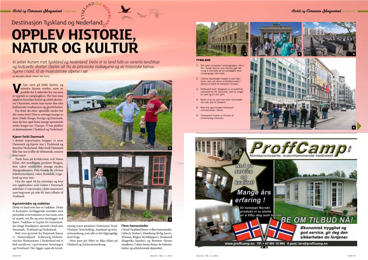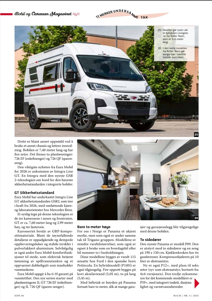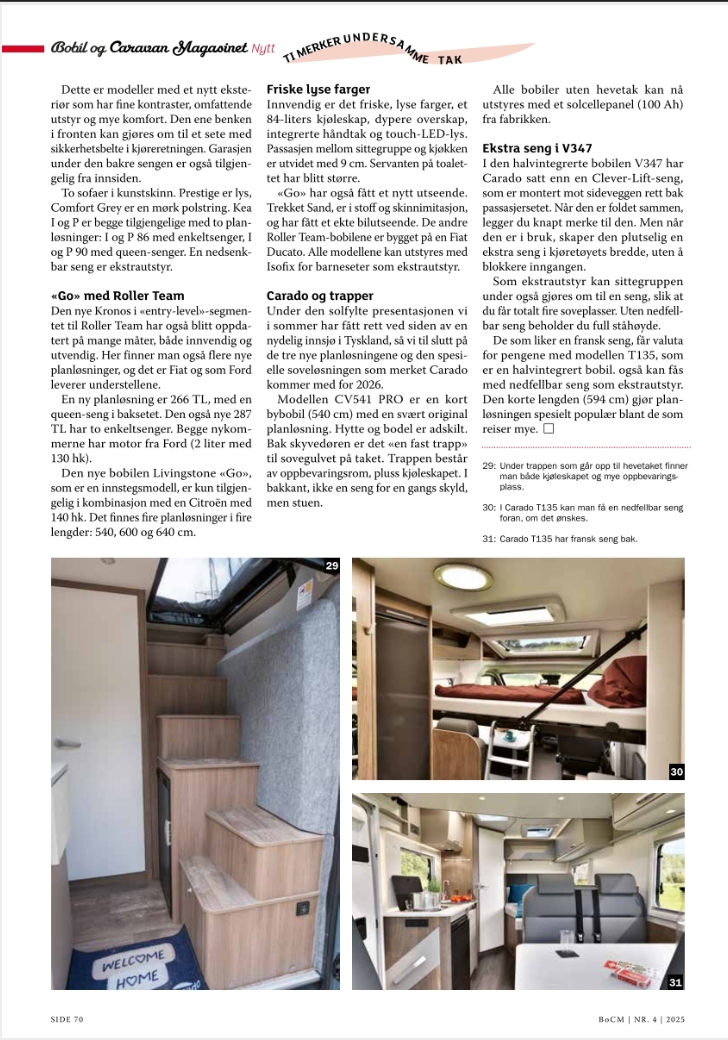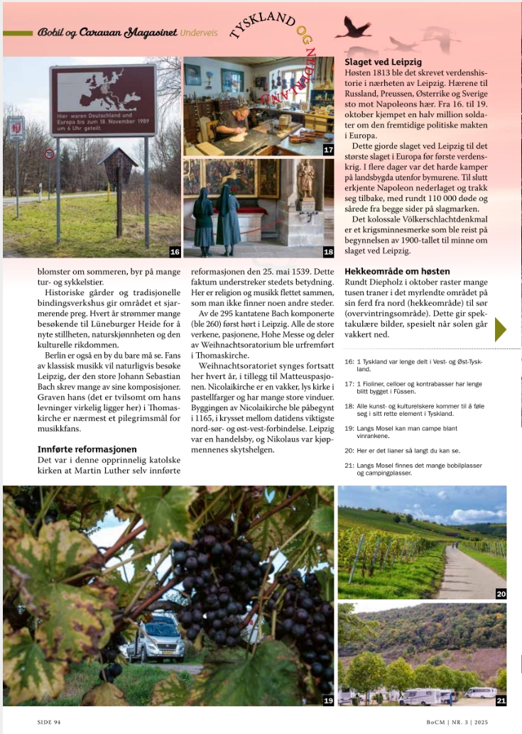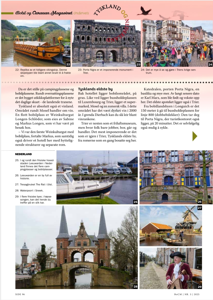 Tegen de zomer 2025 publiceerde het Noorse Bobil og Caravan Magasinet een groot verhaal van mij met tal van vakantiebestemmingen. In het septembernummer publiceerde het tijdschrift veel campernieuws van mijn hand.