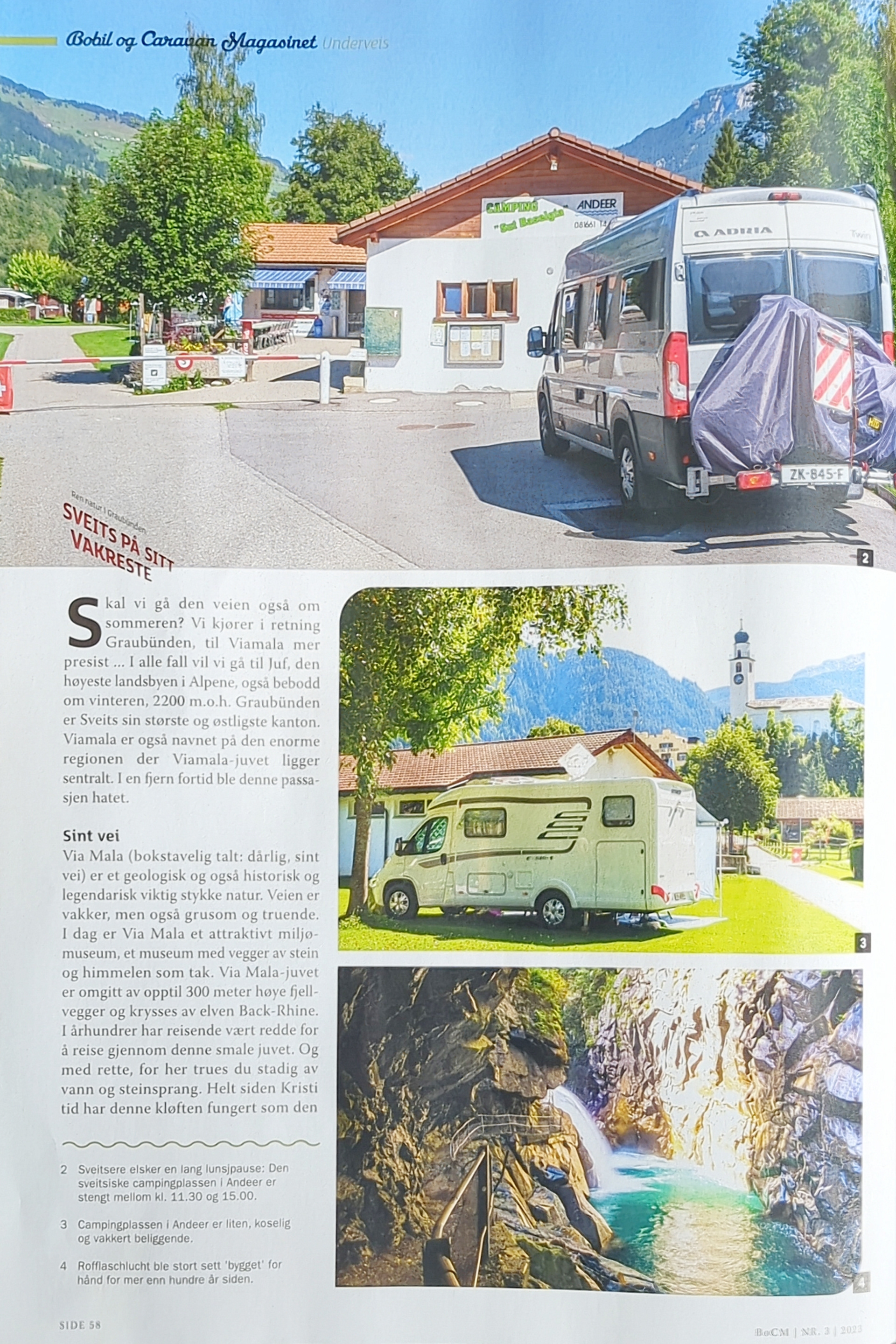 In Graubünden, Zwitserland, maakte ik in 2019 verschillende reportages, de eerste met de eigen camper. Deze reportage verscheen in het Noorse Bobil og Caravan Magasinet.