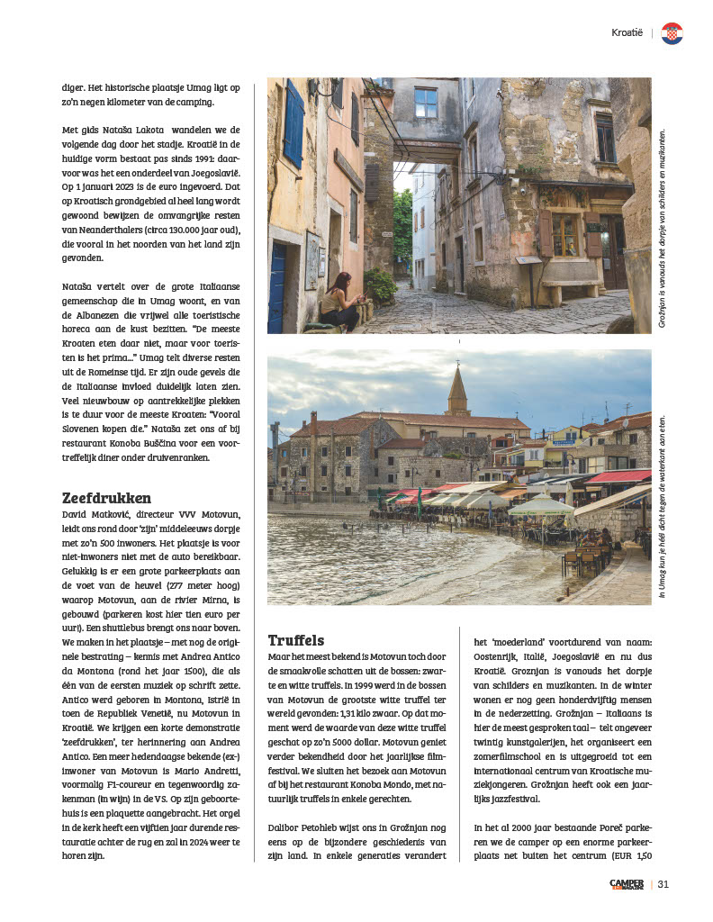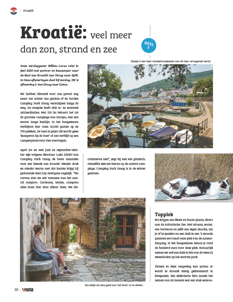 Voor verschillende opdrachtgevers maakte ik in 2023 reportages over Kroatië. Hier de twee afleveringen van het verhaal in het tijdschrift CamperReisMagazine.