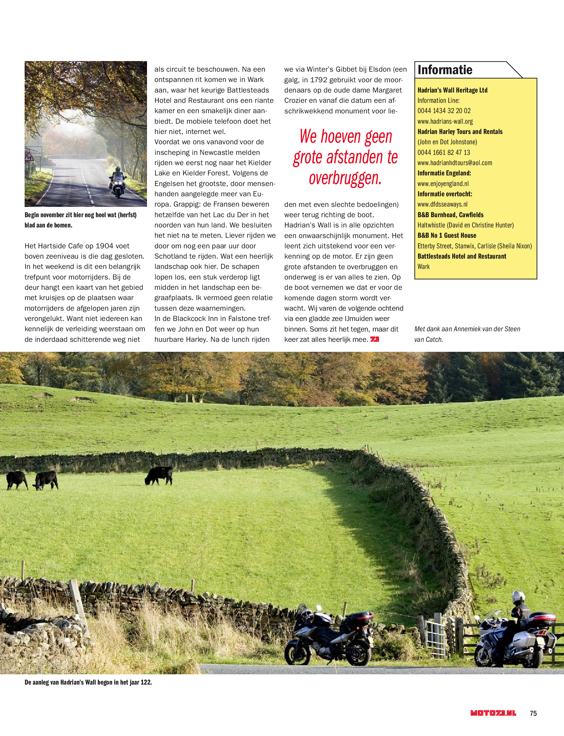 In opdracht van Moto73 reisde ik op twee wielen langs Hadrians Wall. Het werd een prijswinnende reportage!