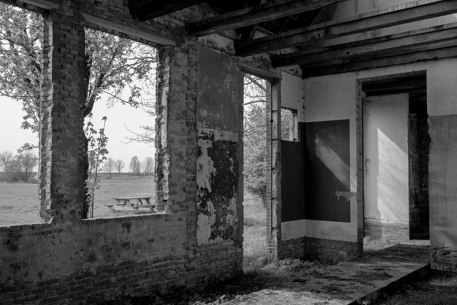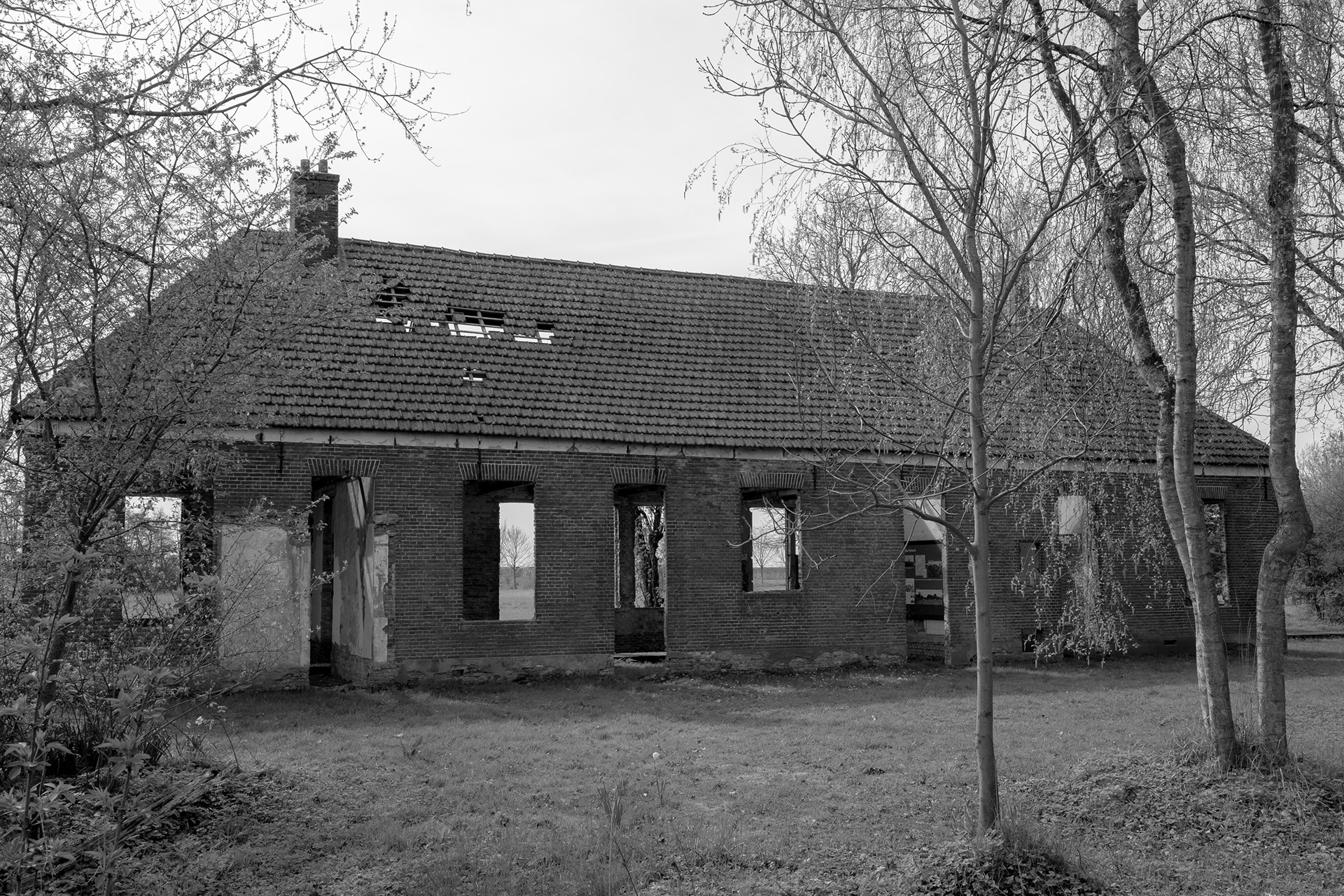 Vakwerkkerkjes Lac du Der (zwart-wit)